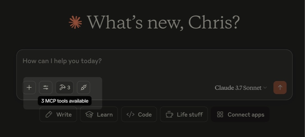 In your chat window, you can now interact with the tools included in your MCP server that's connected