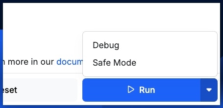Safe Mode runs the function stack without retaining any context in memory, which can be very helpful when looping over a significant amount of data and you’re experiencing crashes. No context just means that things like autocomplete won’t work, and the output of debugging information will be limited.Any questions, please reach out to our support team!