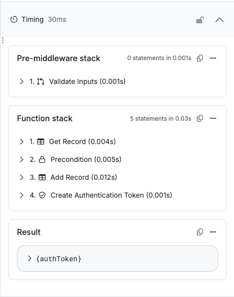 - Step Into / Step Out - Step into or out of a nested function (custom function or middleware) and continue the debugging experience seamlessly