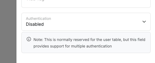 table. You can also enable authentication on multiple tables if you want separate authentication methods for different user groups, such as normal users and administrators.