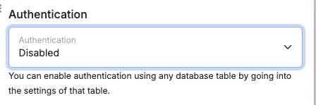 This dropdown will list each table that you have authentication enabled on. Select the table you enabled authentication on.