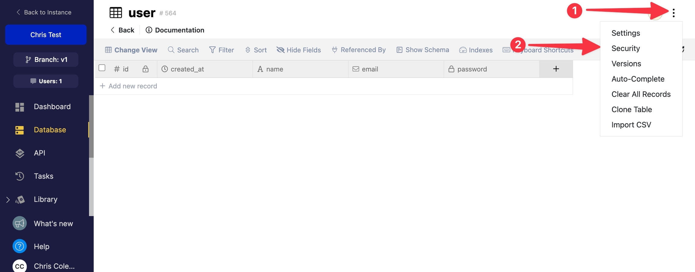 - Head to the source table, click the three dots in the top-right, and choose Security.