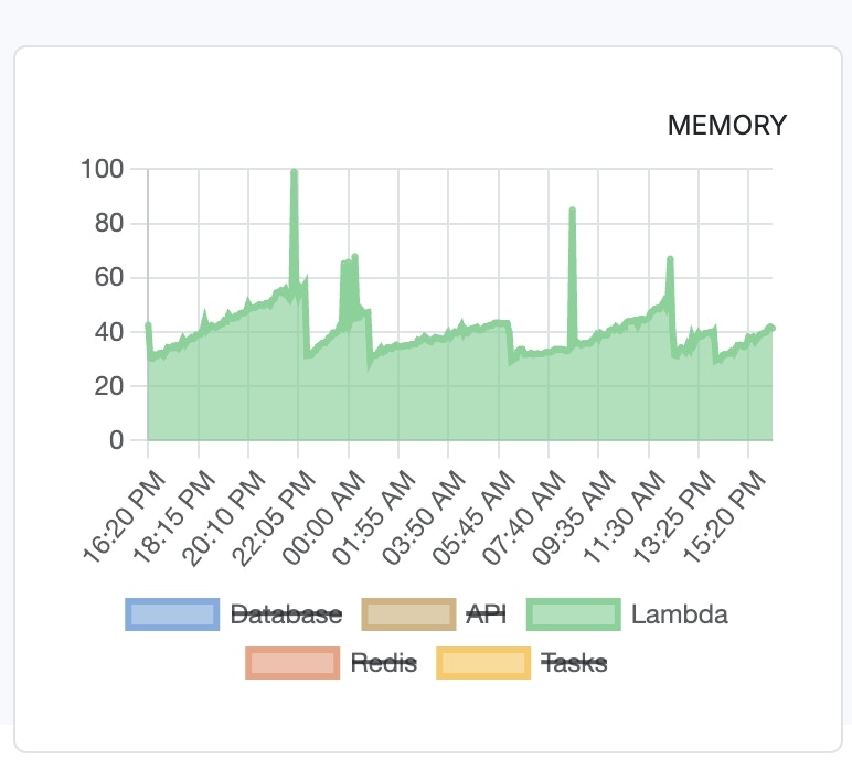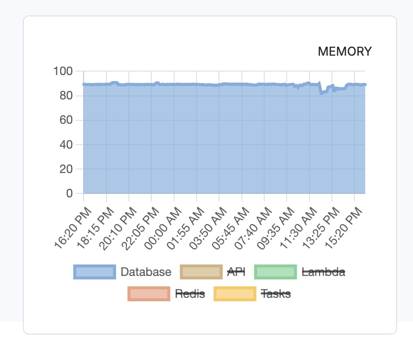 If you are finding yourself in a situation where you are experiencing symptoms of RAM exhaustion, there are a few things you can to do try and mitigate the situation.CommentIt’s important to note that in some cases, when mitigation is not possible, that may signal it’s time to upgrade your Xano subscription tier to increase your available RAM. You can always reach out to Xano Support for further clarification.C Database RAM Spikes in Database RAM can be caused by one or more of the following:-