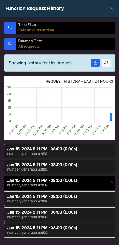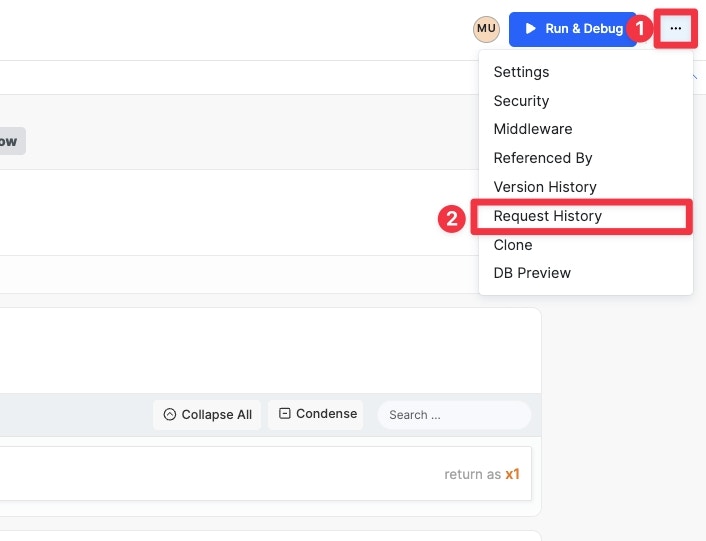 In each individual API, function, task, middleware, or trigger’s settings, you can also control the request history for that object specifically. By default, these will be set to inherit, which means it will obey the branch defaults. Otherwise, you can adjust this for specific objects as necessary.Clearing Request History