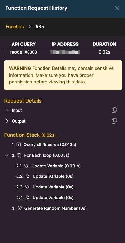 Custom Functions are similar to API endpoints in Xano, in the sense that they have the same No-Code API builder UI. However, custom functions can only be called by other internal function stacks in Xano whether that’s an API, other function, or background task. Functions also have a request history for any time a function is part of a live API request. First, open the request history of a function from the top right menu icon.