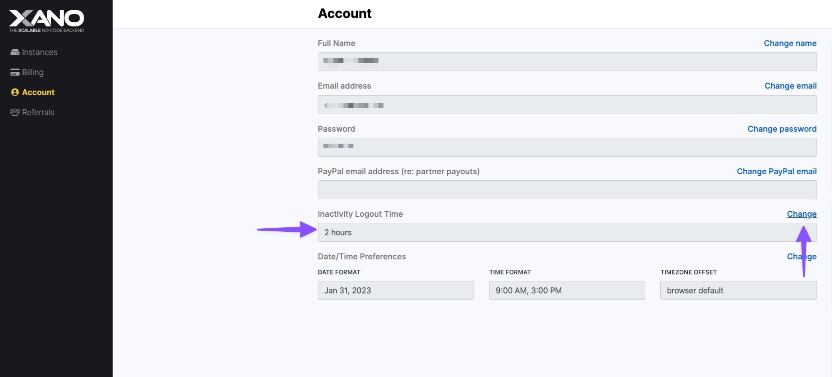To protect your privacy, Xano includes an inactivity timer which will log you out after 2 hours of inactivity by default, but this can be adjusted or disabled entirely via your account settings. This is based on mouse activity and works across multiple tabs.