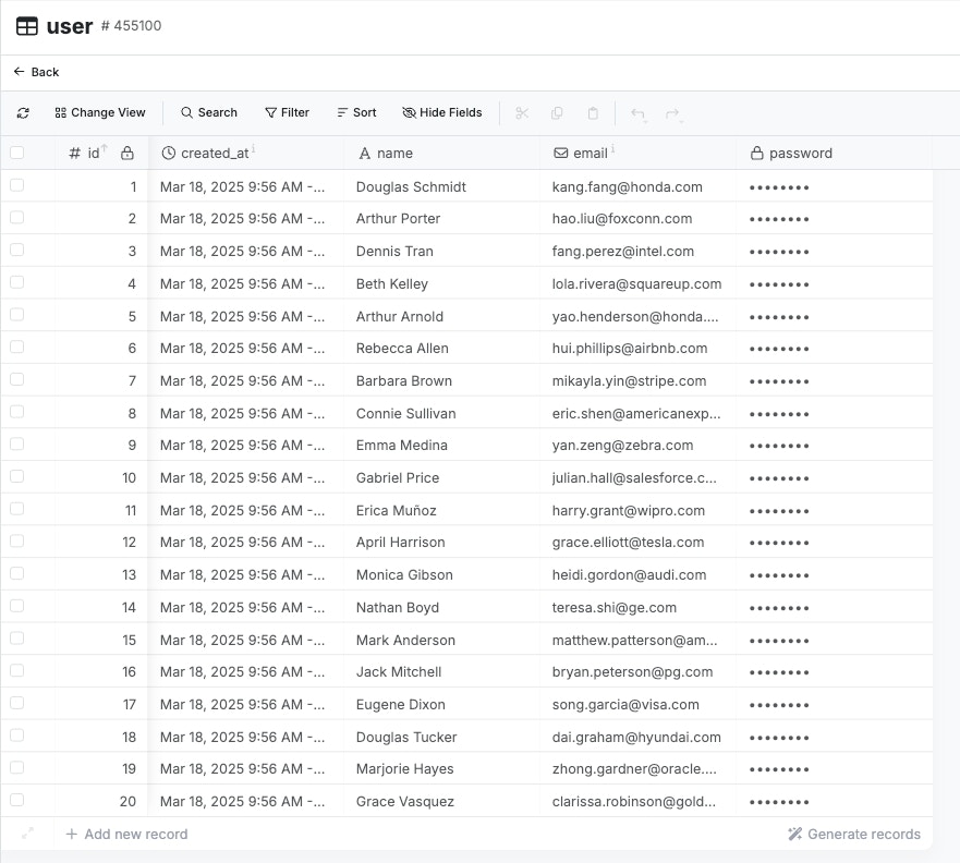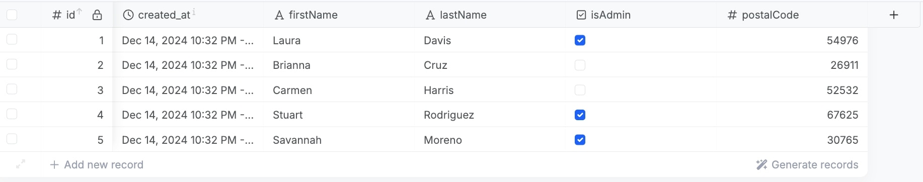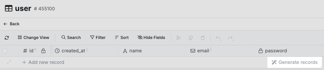 After you’ve created your database , you can generate some sample data to use right away by clicking Generate Records. This option is located at the bottom of your database records — so, if you have no records, you should see it right at the top.