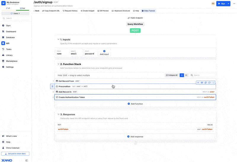 Custom functions can be thought of as a building block for the rest of your backend. You can build a custom function just like an API endpoint, and insert that custom function into other function stacks, giving you easily reusable logic while only having to maintain it in one place. When you make a change inside of a custom function, that change is automatically in effect everywhere you have chosen to use the custom function.Building and Using Custom Functions