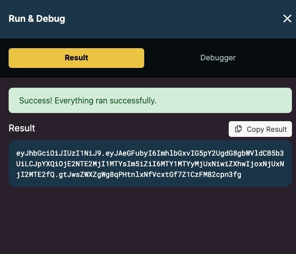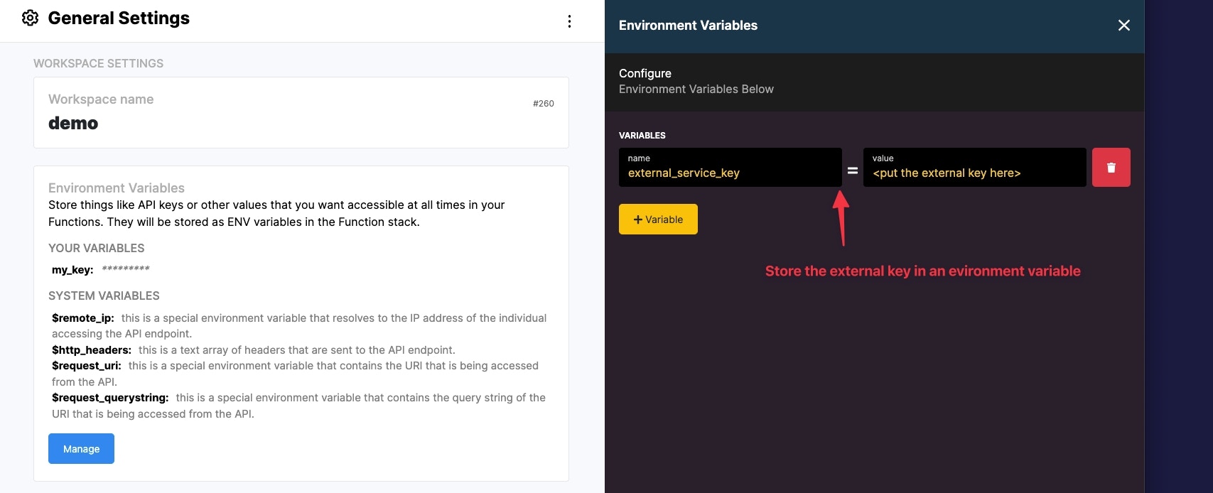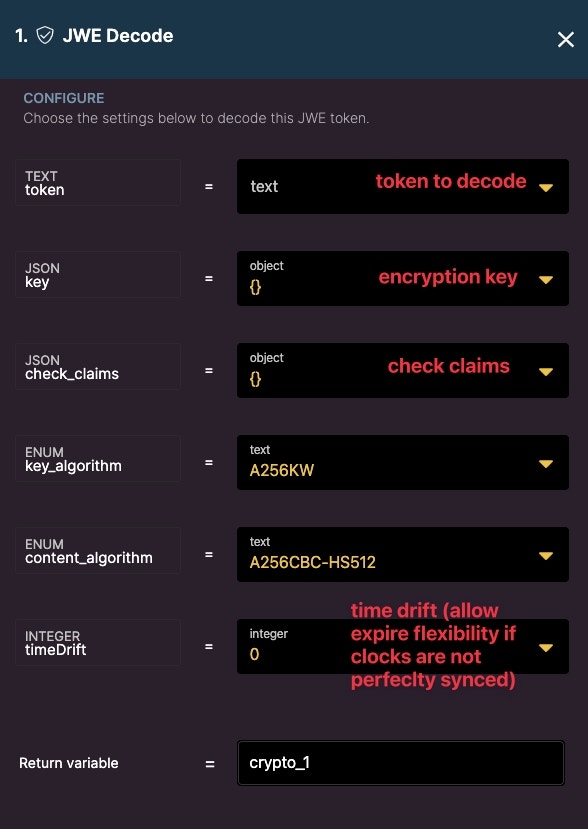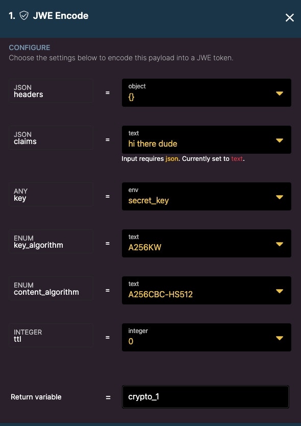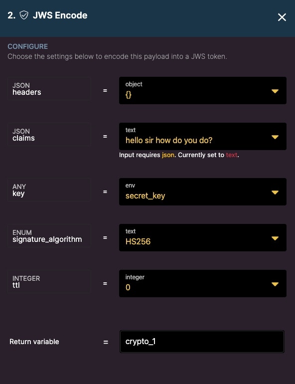 Sometimes you may be using a service that requires you to decode or decrypt a JWS token. Like the above example, it is recommended that you store the key in an environment variable for safe keeping and so that you may call it wherever you may need it in your workspace.