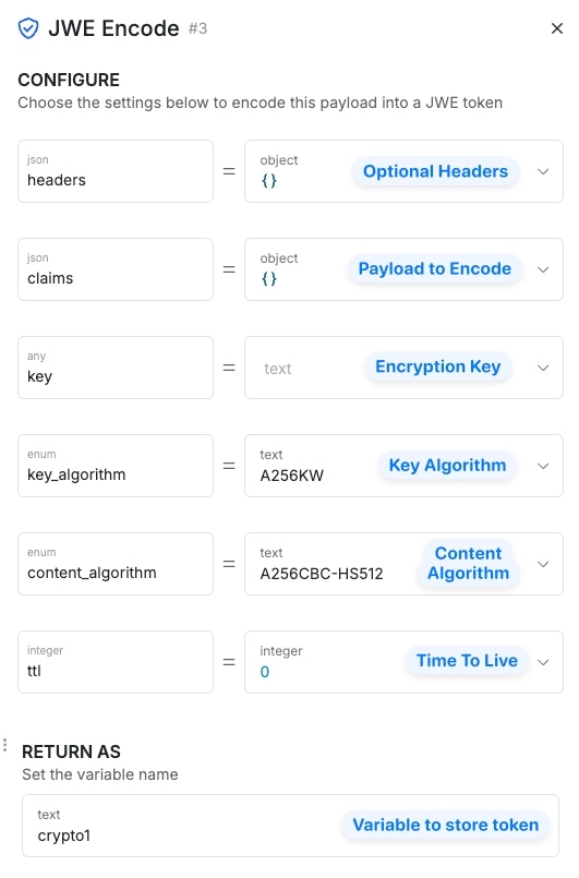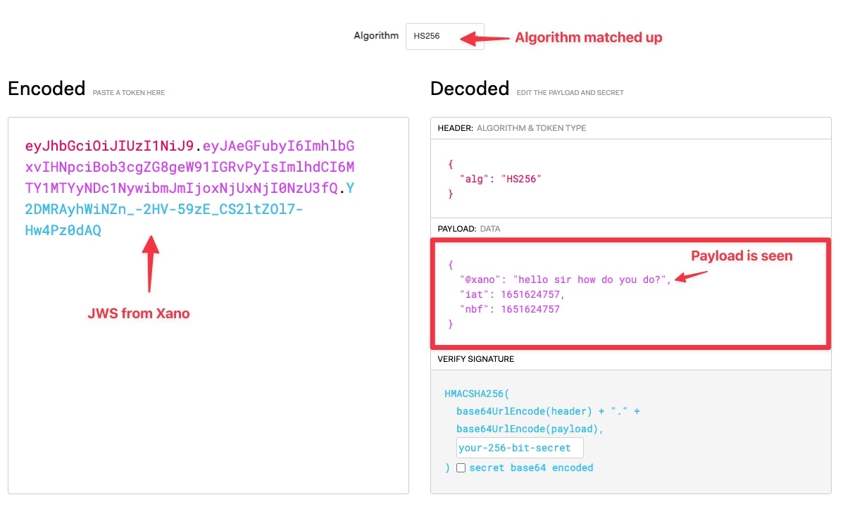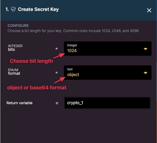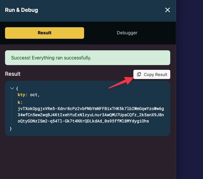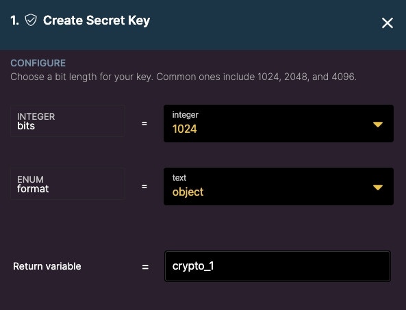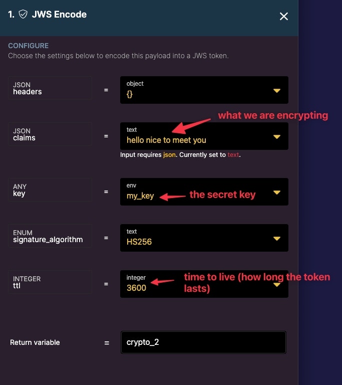 Using your own key We can use our own encryption key when encoding and decoding JWS. First, use the Create Secret Key function to generate a secret key.