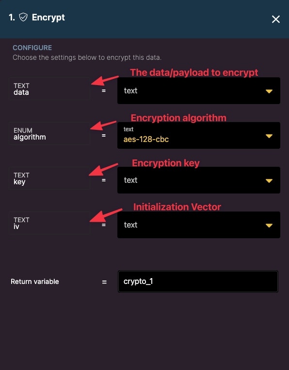 - Key - A key can be generated from one key generating function or you can insert raw text as your key. This same key will be needed to decrypt the data.