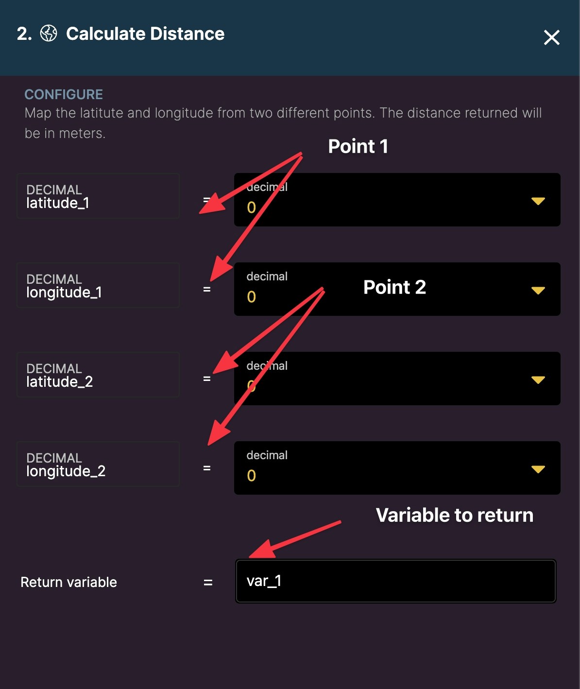 Returns all of your environment variables in a single object.Calculate Distance