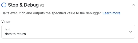 Halts execution and returns a value. Useful to ensure that specific pieces of your function stack are running as expected while building.
