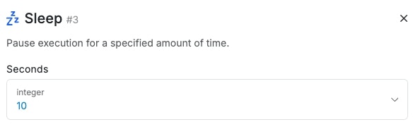Waits for a defined number of seconds before proceeding to the next step.