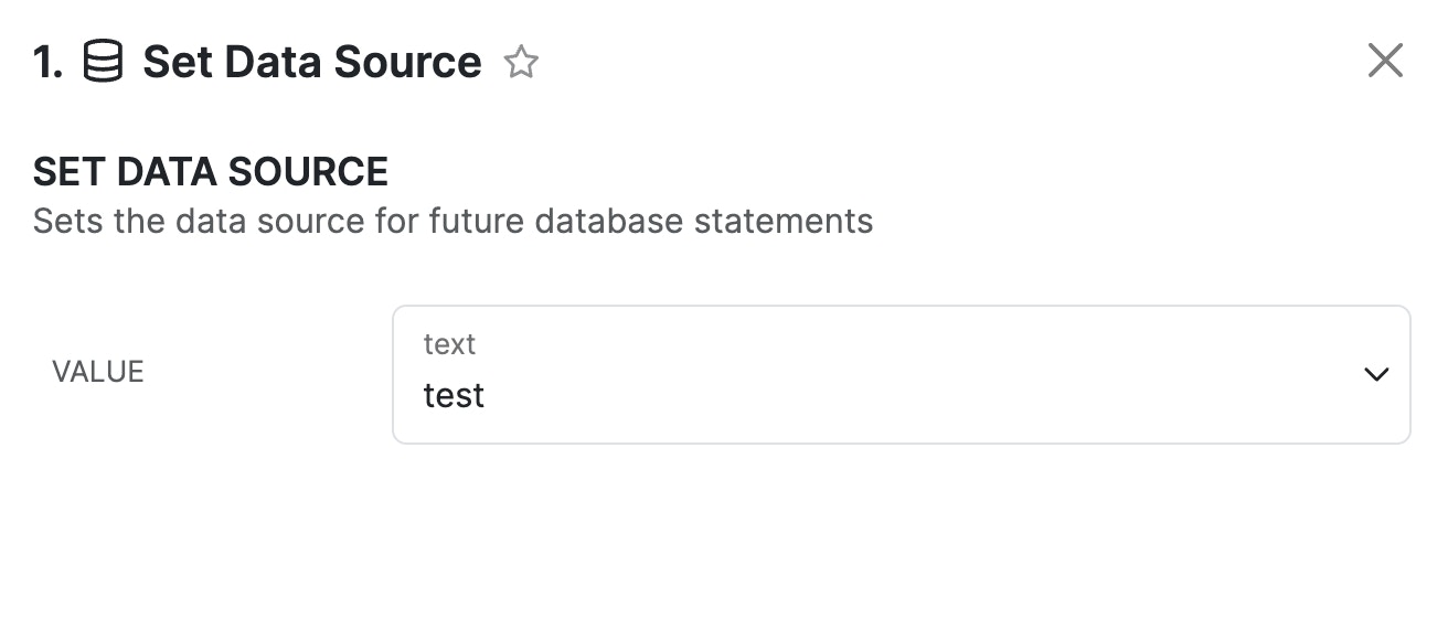 This function allows you to specify which data source that database operations following it target. Remember that the order of operations in a function stack matters, so any database operations that come before your Set Data Source statement will use whatever is used normally.