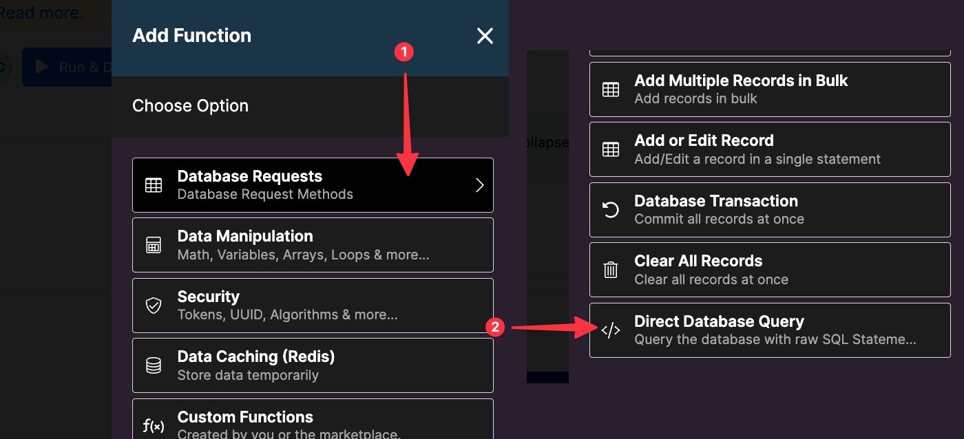 The Direct Database Query function is available starting on the upgraded (non-Legacy) Launch or Scale plans. If you have any questions, please reach out to support.