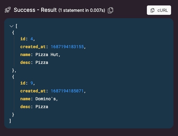 Using the mvpw selector will return two columns: id and xdo, with xdo containing each record’s content. For SELECT statements where you want to return specific columns, use ‘x’ instead.