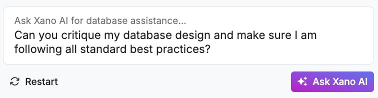 The Database Assistant is designed to ensure that best practices for database design are followed. If you’ve already built your database and just want to have it looked over, you can ask the assistant to check and make recommendations.