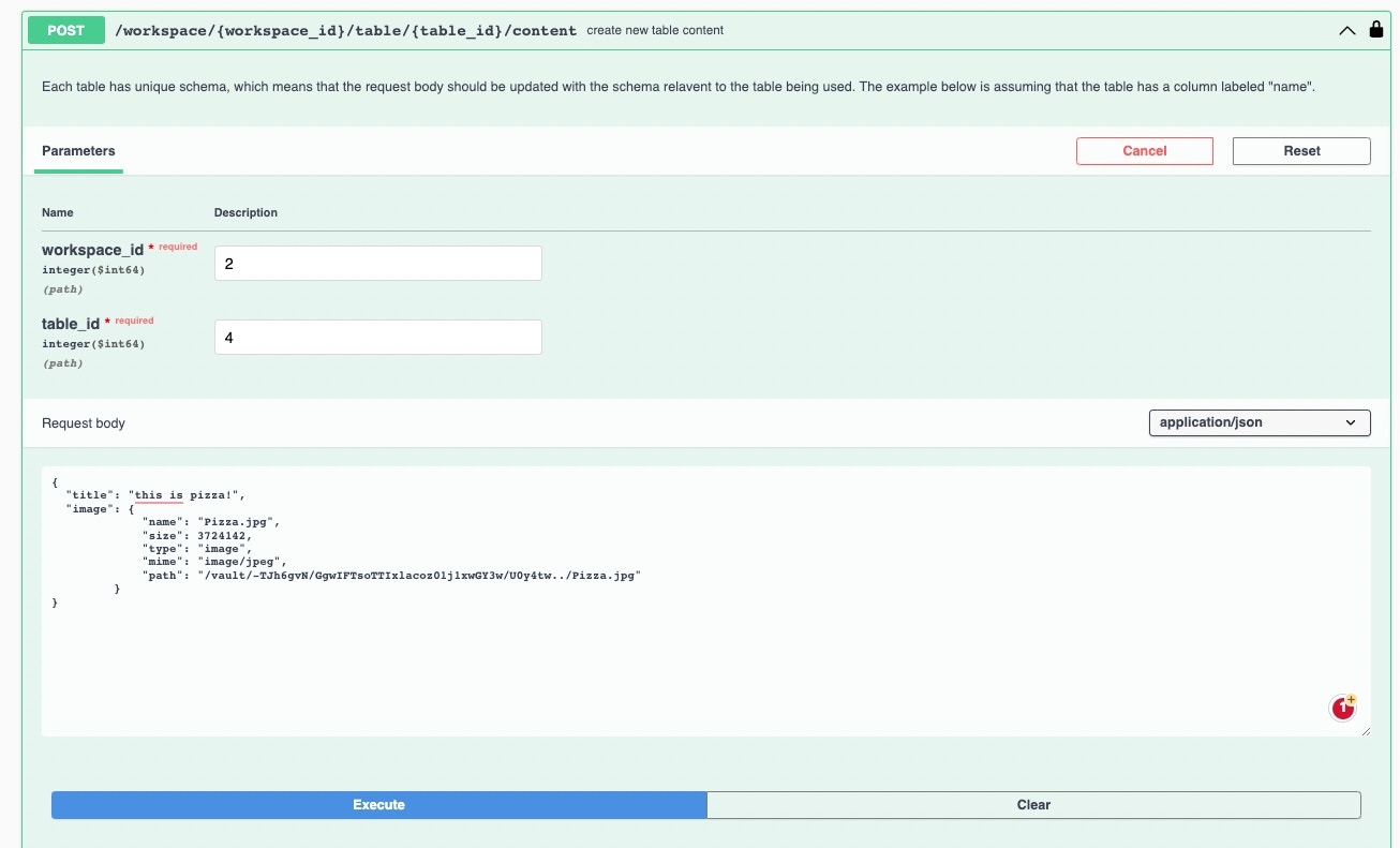 Upload a File then Add it as Content to a Table