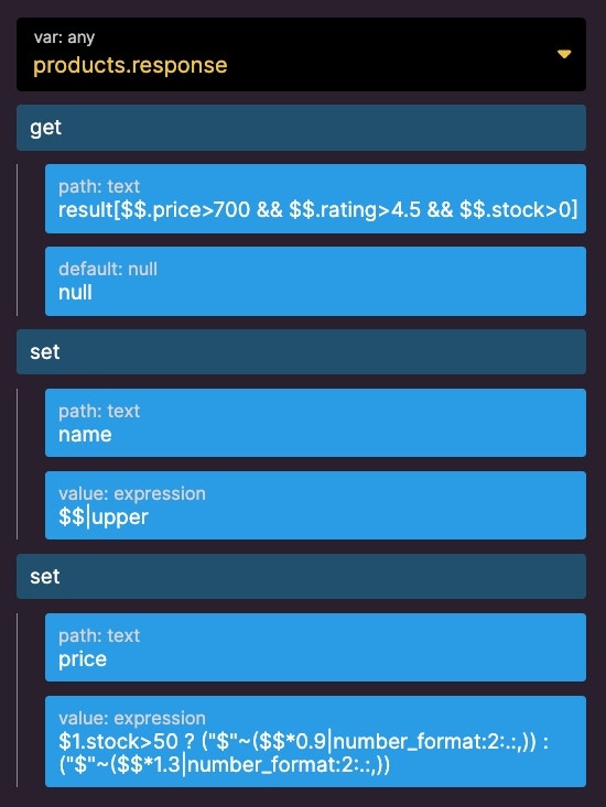 The Xano Transform Engine is a new technology built by Xano that takes the traditional dot notation syntax and upgrades it to support data manipulation. This syntax is friendly to objects and arrays and supports conditional filtering using the new Expression data type. Xano Transform encompasses some updates to our GET and SET filters, allowing you to use a powerful and expansive new type of filtering syntax to parse, return, and transform your data in exactly the way you need. Consider it an alternative to chaining several filters and functions together to accomplish a specific result.Why Xano Transform?