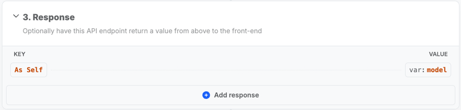 Once your inputs and function stack are defined, we can build our response. This begins with aresponse { object.
