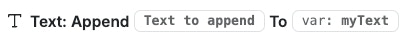 value | This is the text to append to the text in the variable. | ”Text to append” |