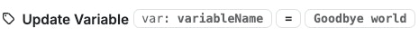 $variableName | This is the name of the variable you want to update. | $variableName |
