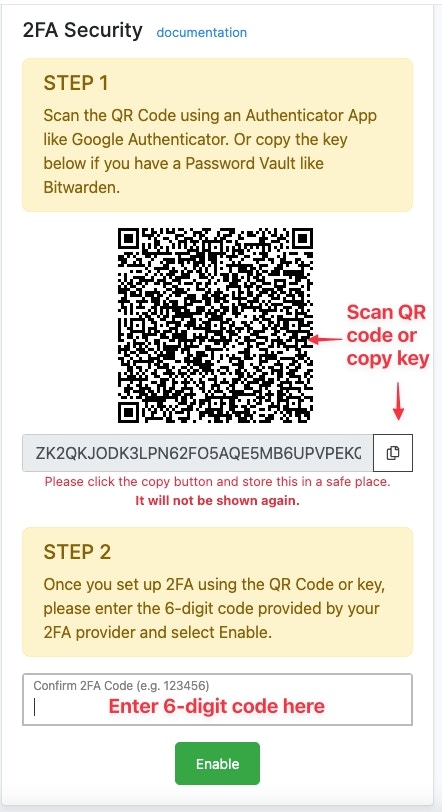 Two-factor authentication (2FA) security enforces an extra security step beyond email and password to help secure your Xano account.You will need an Authenticator App like Google Authenticator or a Password Vault such as Bitwarden to use 2FA security. To enable 2FA security for your Xano account, find the “Enable 2FA” button on the Account page.